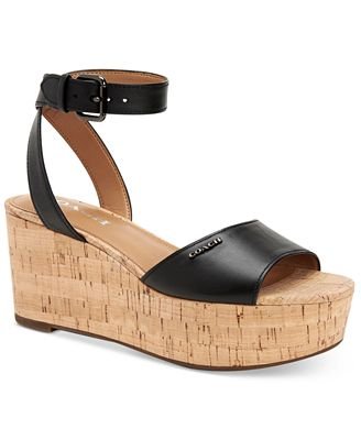 COACH Becka Platform Wedge Sandals, Black, 6B