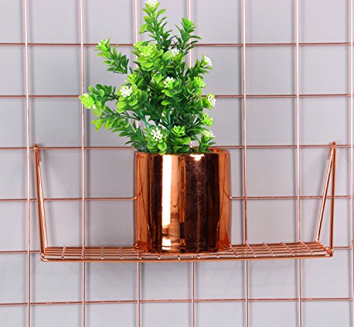 Simmer Stone Durable Straight Flat Shlef For Grid Panel Display, Wire Metal Mesh Hanging Basket Storage Organizer Rack ,Balcony Plant Holder/Shelf Flower Pots Holder,Rose Gold