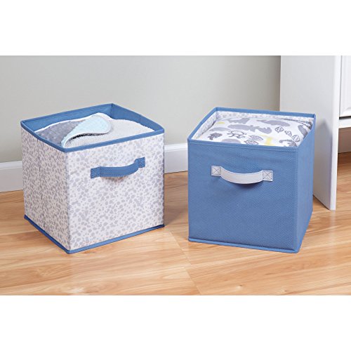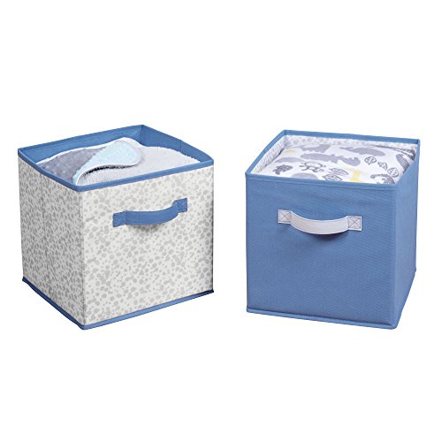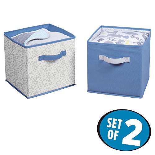 mDesign Closet Fabric Storage Cubes for Blankets, Towels, Clothing - Set of 2, Small, Blue/Gray