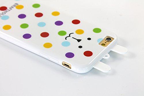 TISHAA Case for iPhone 6 Plus (5.5 inch) 3D Cute Rainbow Polkadot Cat White Animal Craftholic Rubber Silicone Protective Case