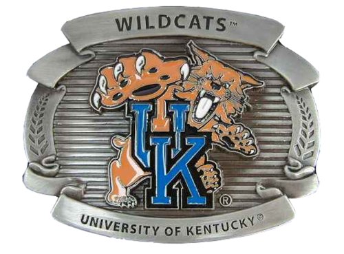 Product DescriptionUniversity of Kentucky Wildcats Novelty Belt Buckle . Measures: 4" by 3 1/4"0