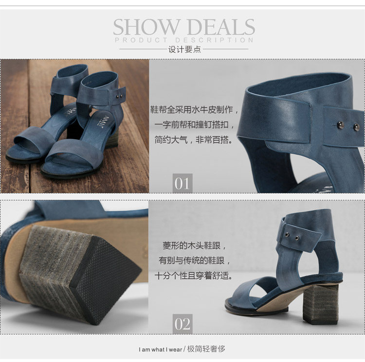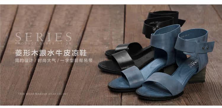 AMII这款皮凉鞋鞋帮全用水牛皮制作,