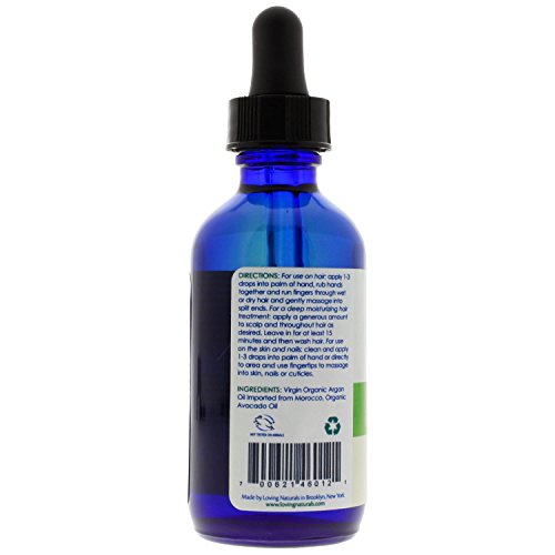 Softening and soothing the skin Argan Oil is naturally rich in Vitamin E, an antioxidant and Oleic and Linoleic essential fatty acids. These properties are considered to offer wonderful anti-aging and rejuvenating benefits to hair, skin and nails. The oil is light and absorbs quickly Benefits For the Skin • Protects the skin from harmful UVA and UVB rays, while reversing the damage that may have already occurred. • Removes impurities and dead skin cells. • Soften and smooths the skin and improves the complexion. • Reduces skin irritation and itchiness from dry skin. • Helps reduce inflammation, itching and redness from psoriasis and Bright's disease. • Reduces wrinkles and age spots. For the Hair • Avocado oil protects the hair from heat and other chemicals. • Gets rid of split ends and frizzy hair. • Hair treatment enhances hair growth and thickens hair. • Adds shine to dull, dry hair. • Reduces hair loss due to low levels of Vitamin B and E. • Is an excellent beard oil for men. Loving Naturals was created out of the desire to use the most safe and natural products on our children and provide consumers with a product they can trust. You can be assured, we will earnestly research every ingredient we use, use the most natural or organic ingredients available and always disclose every ingredient.