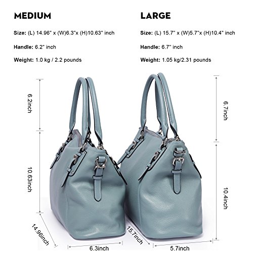 [Dimensions]: This purse have 2 sizes, the larger one is (L) 15.7" x (W)5.7"x (H)10.4" inch, and the weight is 2.2 pounds. the medium one is (L) 14.96" x (W)6.3"x (H)10.63" inch, and the weight is 2 pounds. Please see more details in Product Description, you can choose the size you want.