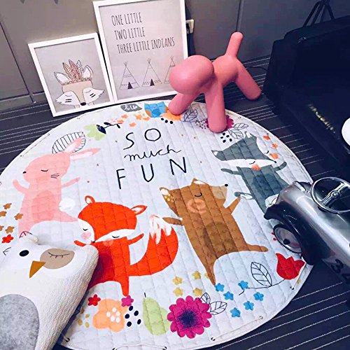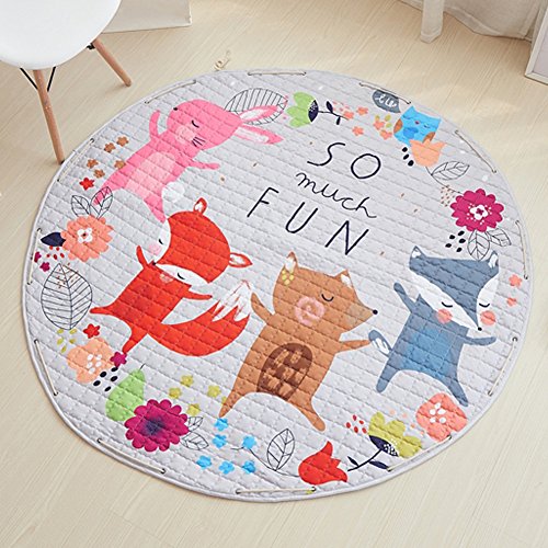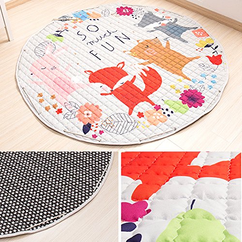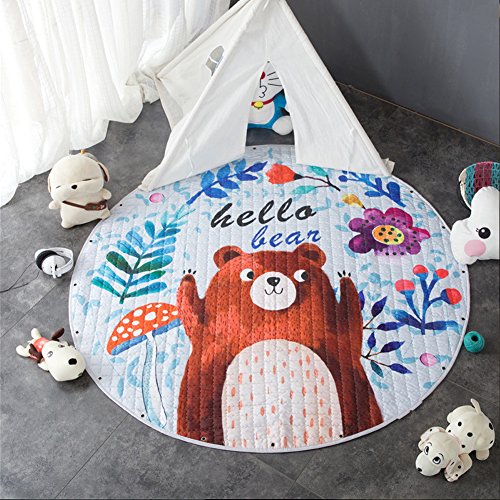-. Feature : Material:Cotton, Size: Diameter 58 inches( Machine washable so easy to keep clean over time - Use mild detergent, no bleach, and tumble dry on gentle/low heat for longevity. Use warm iron if needed) / Super soft and luxurious non-toxic cotton fabric that is both fun and durable. The large size provides you transform any open space to a comfortable play space for you and your child / Easy carry,activity play mat during the day which folds instantly into a portable toy storage bag.Simply grab and go! With a quick pull of the drawstrings.No mess and all toys will be stored, ready to go for the next play session.Baby can play the game anytime. / Make kids more fun to sleep.Perfect play carpet for bedrooms, playrooms, classrooms, travel, speech therapy, or rainy days at home. Ultimate for keeping toys organized at home. / Mummy's good choice-Designed like a play-mat, which can be used as a storage bag.Use this to make sure your child is having fun without worrying about the mess.At the same time your baby will have a good sleeping on this cotton rug.