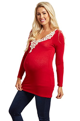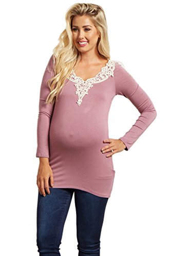 PinkBlush Maternity Crochet Neckline Fitted Tunic