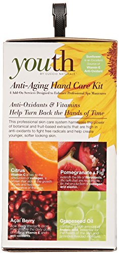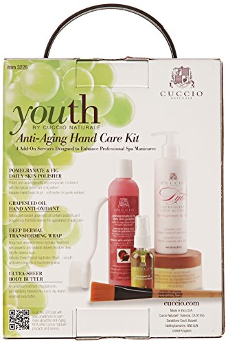 ReleaseDate : 2015-10-14 Studio : The Regatta Group DBA Beauty Depot Publisher : The Regatta Group DBA Beauty Depot Binding : Health and Beauty Product Description With the Youth Anti-Aging Add On Service Kit from Cuccio, you'll get all the products you need to enhance your manicure in one box. It includes: Pomegranate Fig Daily Skin Polisher (8 Ounce ), Grapeseed Hand Anti-oxidant Oil (1 Ounce ), Deep Dermal Transforming Wrap (8 Ounce ), Pomegranate Acai Lyte (8 Ounce ), Hand Facial Brush and a Deep Dermal Application Brush. Cuccio designs products created to enhance and beautify clients worldwide. Their mission is to make innovative high quality products with great value. 0