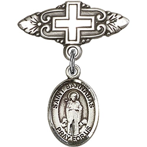 -. Title : Sterling Silver Baby Badge with St. Barnabas Charm and Badge Pin with Cross 1 X 3/4 inches