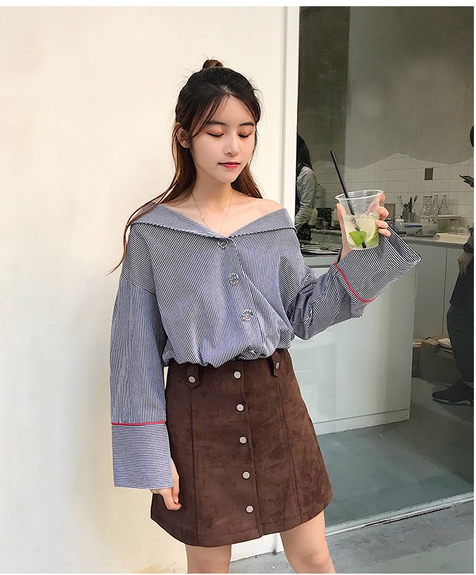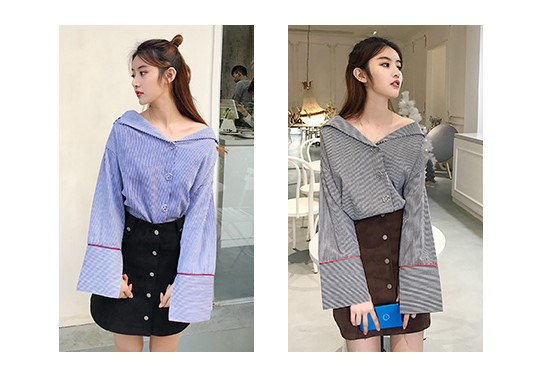大きな襟元に、ボリューム袖が華奢見えを叶えてくれます。