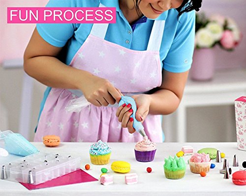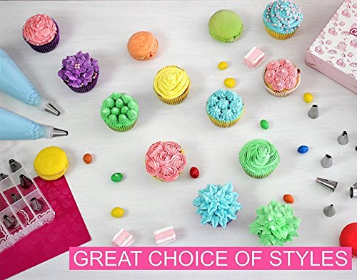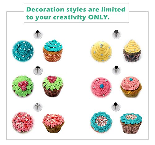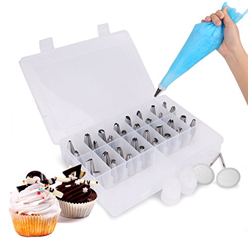 - All tips are made from the highest quality, 100% food grade stainless steel (304). - Silicone pastry bags FDA and LFGB approved. - Easy to clean and dishwasher safe. - Compact, lightweight and easy to use. - Made with durable and premium materials so they last for as long as possible. - Meets all industry standards. - Our tips are corrosion resistant so they won't rust. - Reusable and non-stick. - The tips, coupler and case are all tasteless and non-toxic. - Perfect tools to decorate all your cakes, cupcakes, cookies, pastry and more. - 45 days money back or replacement warranty.