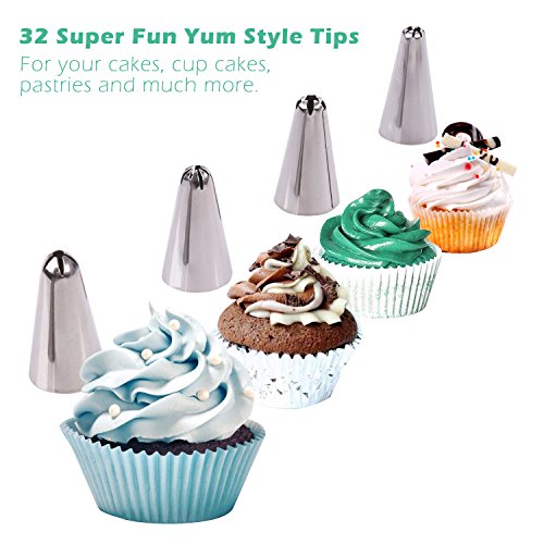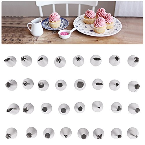Warmhoming 32 Stainless Steel Tips - Robust, long-lasting, stainless steel, corrosion resistance, non-stick, dishwasher safe icing tips.