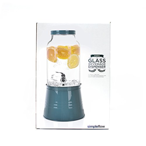 SIMPLE FLOW 1.5 GALLON LARGE BEVERAGE DRINK DISPENSER WITH DISPLAY STAND - DARK BLUE