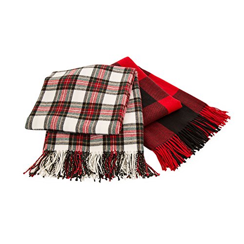 (Glitzhome)/Bedding Bath/Bedding/DIRECT FROM USA/Glitzhome 100% Acrylic Dress Stewart Tartan Plaid Throw Blanket with Fringe, 50' x 60'