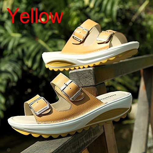 Product Description Features: Color:pink.yellow,blue,white Heel:3cm Platform:2cm Size range:US5-9 EU35-40 Material:PU The specific size information is in our pictures, please choose right size according to yourself, you! Shipping: 1. Generally, we will ship your order 0