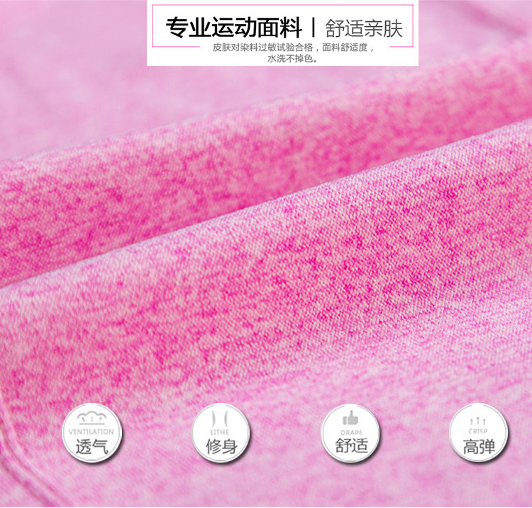 The material is nylon spandex quick-drying dyeing treatment, moisture perspiration, summer sports running wear sweat breathable.