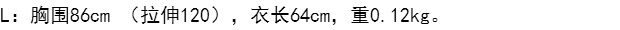 L: Bust 86cm (Stretch 120), Length 64cm, Weight 0.12kg.