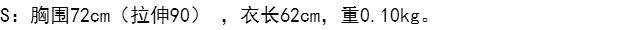 S: Bust 72cm (Tensile 90), Length 62cm, Weight 0.10kg.