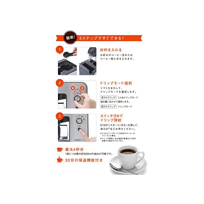 원본상품명: CCP 【BONABONA】 全自動ミル付きコヒメカ(保機能搭載) 「豆粉からドリップ可能」 ガラスジャグ付き ブラック BZ-MC81-BK