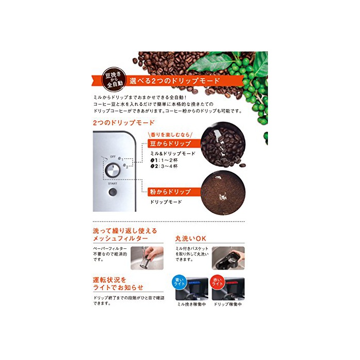 부속품:본체 뚜껑,유리 서버,밀 부착 드 re《파》,필터,계량 스푼,손질 브러시,취급 설명서(보증서 포함한다)