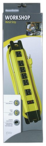 Coleman Cable 04657 6-Outlet Metal Power Strip, Heavy Duty Design, with 15-Feet