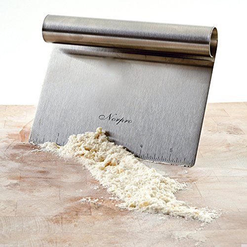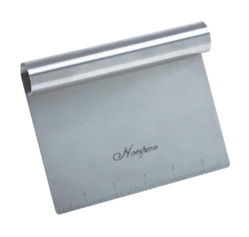 Stainless Steel Scraper/Chopper features measurements on the blade for easy measuring and cutting. Easily scrape and transfer ingredients to bowl or clean your counter. Easy to grip handle.