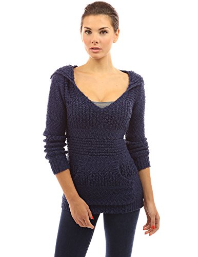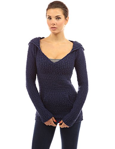 PattyBoutik Hoodie V Neck Long Sleeve Kangaroo Pocket Open Stitch Knit Sweater. The camisole is Not included. Model in pictures is 5 feet 8 inches (173cm) tall wearing size S.