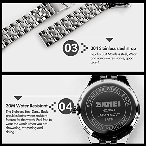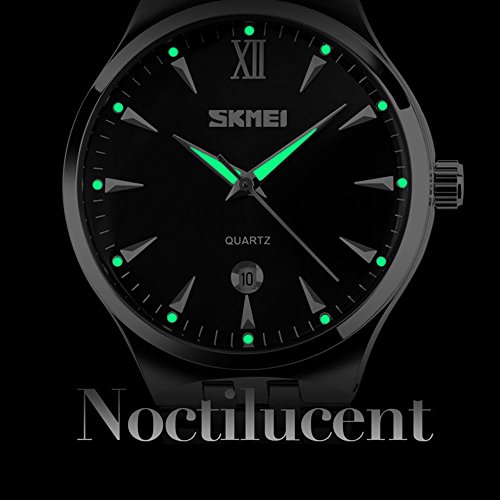 -. Feature : Fashion men's business luminous watch. Precise quartz movement for accurate time keeping / German high hardness glass plate. Durable stainless steel back cover and watchband / Luminous pointer and scale, you can read the time clearly in the dark / Auto date displayed in a mini window, like a living calendar / 30 M deep water resistant, feel free when you are washing hands, in the rain, showering and swimming. Please DONOT press any button underwater, and keep it away from steam and hot water