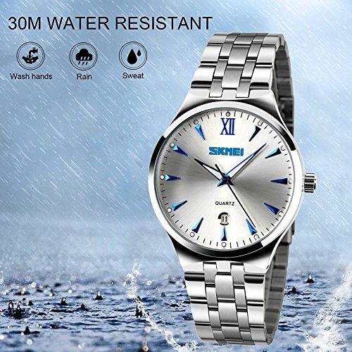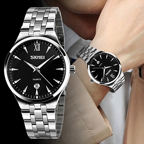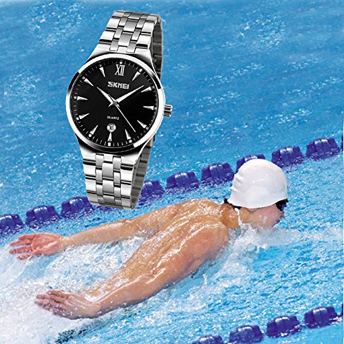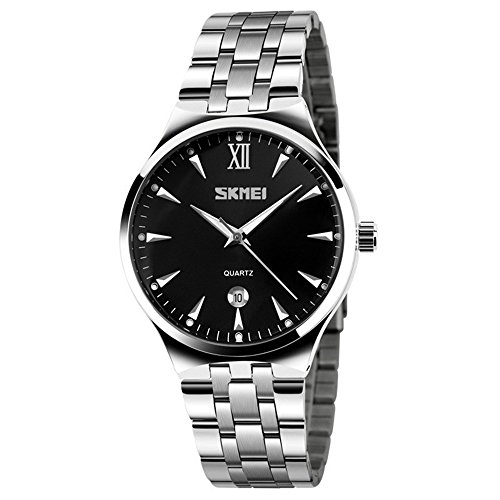 -. Title : SKMEI Men's Brand Luminous Business Watch Waterproof Stainless Steel Band Date Display Quartz Wristwatch