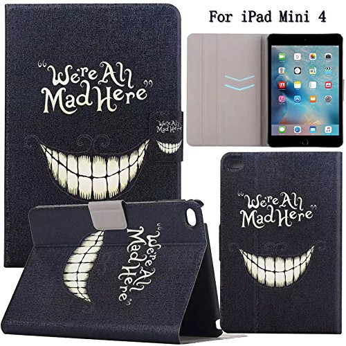 iPad Mini 4 Case, Newshine Premium Leatherette Case with [ Card Slots] Ultra Slim [Lightweight Stand Smart] Cover for 2015 Released Apple iPad Mini 4 (With Auto Wake/Sleep Feature) (3Crazy Teeth)