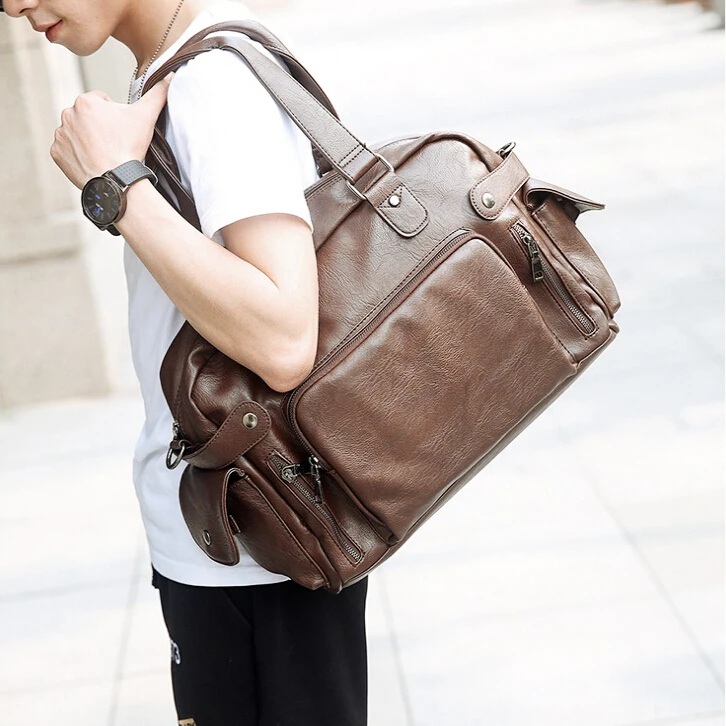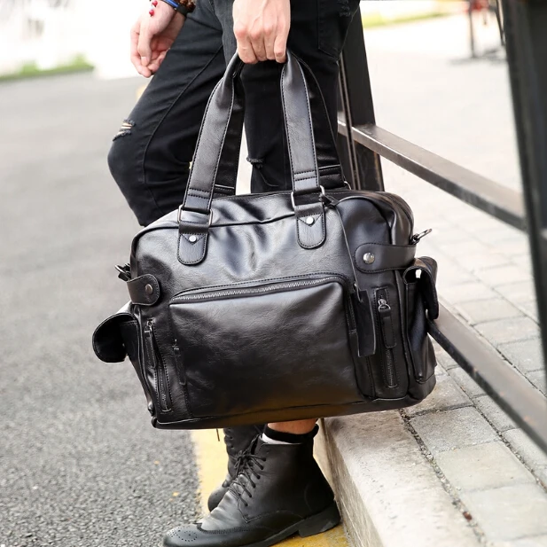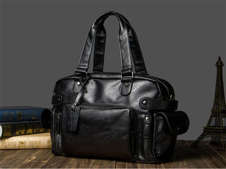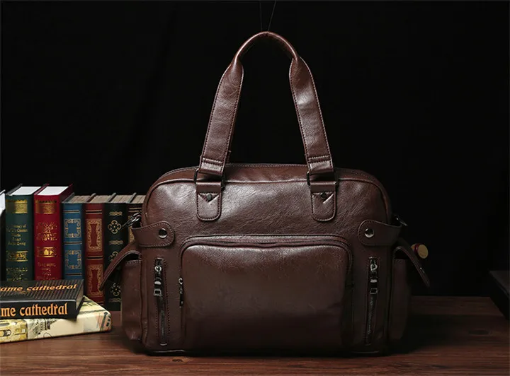 Pu leather Solid Hand Bags:Vintage Men Messenger Bags