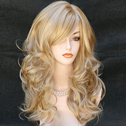 Kalyss Women's Long Curly Body Wavy Heat Resistant Blonde with Highlights Wig Synthetic Full Hair Wig for Women (blonde with Highlights)