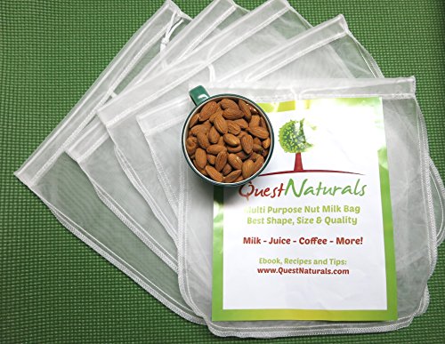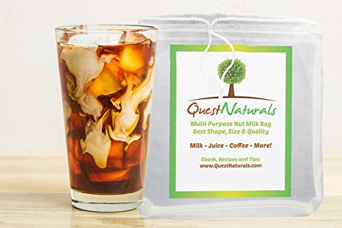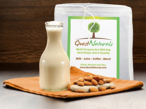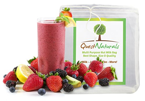 - Feature : Durable, Tear Resistant, & Quality Materials Make the Best Nut Milk Bag - Your new quality nut bag won't rip apart at the seams like many other nut bags do. Durable seams on the outside of the bag makes washing it a breeze with warm water. Hang dries quickly after each use. Best large nut milk bag available! / Eco-Friendly, Chemical & Dye Free Milk Strainer Bag is Safe and Sanitary - You care about the environment, so it's only natural that you want the best nut milk bag strainer on the market. Your quality nut milk bag can be used again and again to make your favorite milk, coffee, tea, cheese, juice, etc. / Best Multi-Purpose Reusable Nut Milk Bag Strainer - You can use the reusable fine mesh strainer bag to make more than just milk. You can also make juice, cheese, kefir, yogurt, cold brew coffee, tea, smoothies and more! The possibilities are endless and if you use a mesh strainer often, you'll find this large nut milk bag is the only kind you need! / Carefully Designed Mesh Nut Milk Bag Prevents Grainy Pulp - The superior nylon mesh is very fine so you can successfully strain strawberries and other foods with small seeds and food particles that often get through other strainers, causing you to double strain. No double straining is required with this premium milk strainer bag. / Free eBook and Recipes with Your Purchase - Enjoy the many recipes provided with your purchase of the large nut milk bag strainer. If you enjoy smoothies you can't go wrong with a quality milk bag for smooth, pulp-free results every time. Commercial quality nut milk and juice strainer bag.