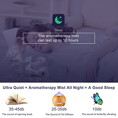 - 【Diffuser for Essential Oils& Humidifier& Nightlight】 - Add drops of essential oils into the water, it will be an aromatherapy oil diffuser. Without essential oils, it will be a cool mist humidifier. Meanwhile it can function as a perfect nightlight. Coated with wood grain, it’s an exquisite furnishing article.