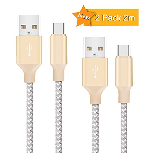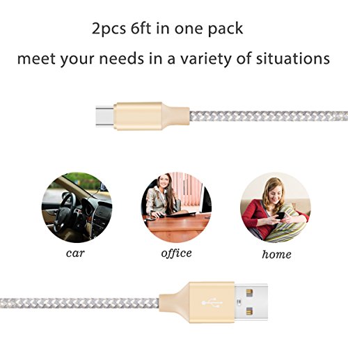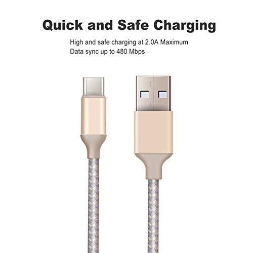 USB C Cable, Quntis 2Pack 6ft Nylon Braided USB 2.0 Type C to Type A Micro Cable for Macbook Pro Pixel Nexus 5X/6P Nokia N1 Tablet and More USB Type C Devices(Gold)