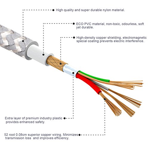 [SOLIDLY CONSTRUCTED] Coated with tightly nylon braided fabric and reinforced connector ends with aluminum alloy provide durability and protection. It lasts much longer than the traditional plastic one.