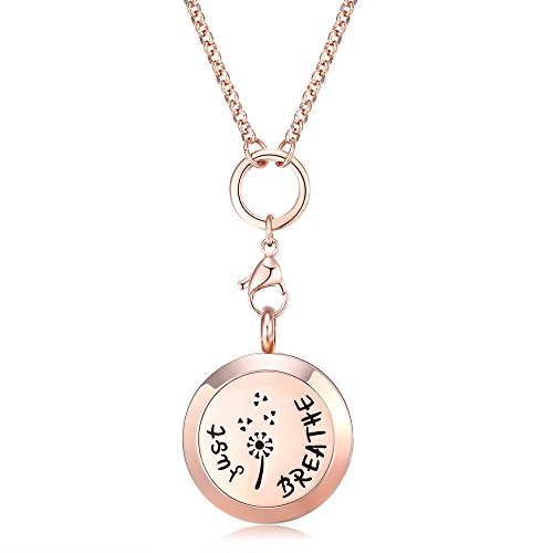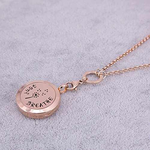 Mesinya Rose Gold Color Just Breathe Aromatherapy / Essential Oils surgical S.Steel Diffuser Locket pendant Necklace