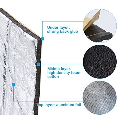 uxcell 394mil 10mm 10.76sqft Car Auto Heat Sound Noise Dampener Deadener Insulation Hood Door Underlay Mat 40"x40" -Intensive Aluminum Foil Face