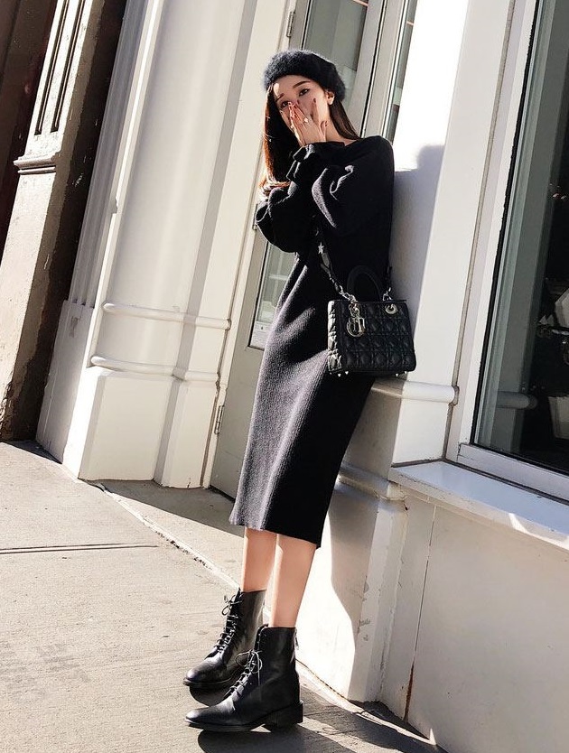 可愛い パフスリーブ + フレア袖 の ニットドレス です☆