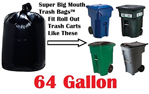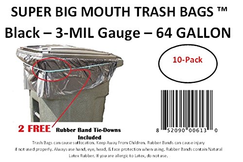 64 Gallon Super Big Mouth Trash Bags 10-Pack Plus 2 Free Rubber Tie Down Band