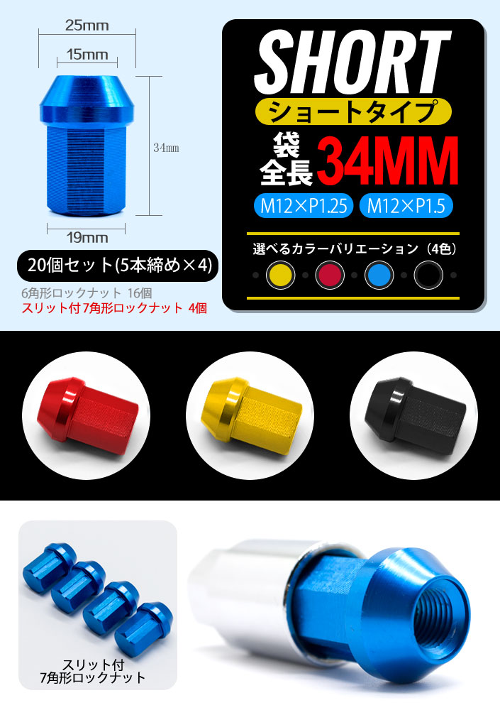 軽量アルミレーシングナット 34mm【袋型】4色から選択可能![M12×P1.25][M12×P1.5]