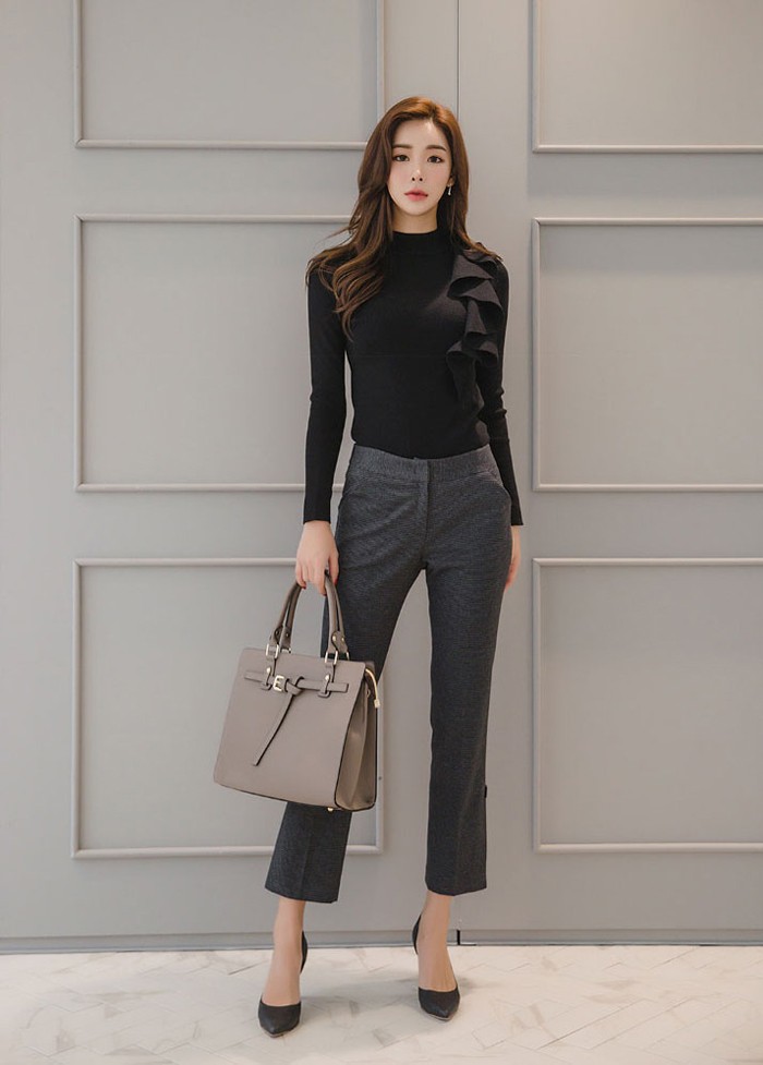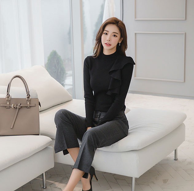 商品名:トップス ニット セット 無地 長袖 フリル配色
