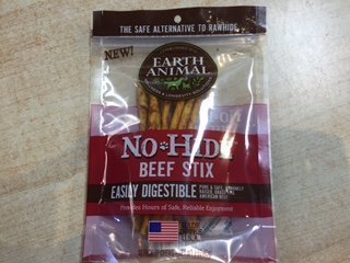-. Feature : Earth Animal No-Hide Beef Stix, 10ct (Beef) and Earth Animal No-Hide Salmon Stix, 10ct. / Our No-Hide Beef and Salmon Chews are long-lasting, 100% digestible chews / We were tired of unacceptable ingredients and chemicals. This is why we created No-Hide they are one of the first chews of its kind and Hide free! / Chews are digestible, nutritious and have absolutely NO chemicals or additives / Every No-Hide Chew is made in our USDA inspected human food facility
