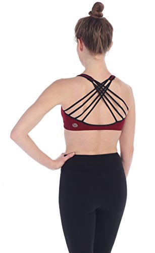 American Fitness Couture Womens We-Ho Flow Criss-Cross Strappy Back Scoop Neck Studio Support Sport Bra