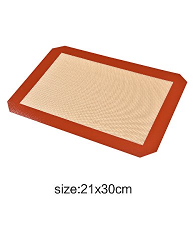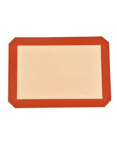 - THICK/LARGE & MULTI-PURPOSE: Fits US standard half size baking sheets (Thick & Large 11 5/8" x 16 1/2") - Mat thickness is 0.75 mm (approx. 1/32"). Perfect for baking, kneading, rolling, candy/macaron/pastry/cookie/bun/bread making as well as for freezing meat balls, dumplings, fruits and vegetables.