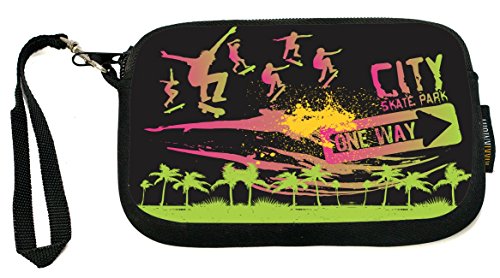 -. Title : Rikki Knight Fluffy Cat on a Skateboard - Neoprene Clutch Wristlet with Safety Closure - Ideal case for Camera, Cell Phone, Gameboy, Passport, Cosmetics case, Universal Cell Phone Case etc..