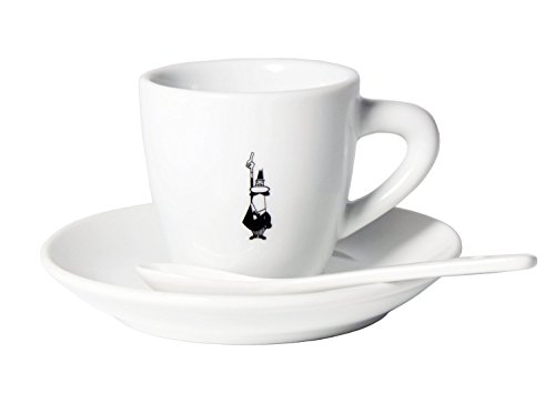 BIALETTI CLASSIC ITALIAN ESPRESSO CUP AND SAUCER WITH SPOON SET IN PORCELAIN, WHITE