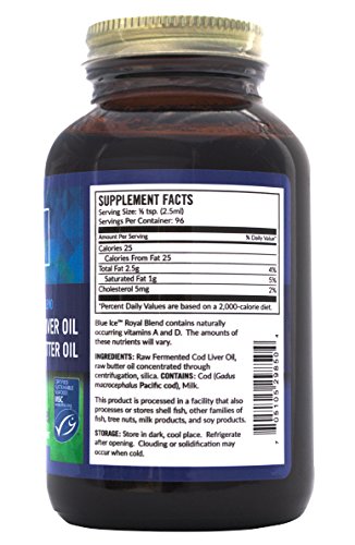 -. Title : BLUE ICE Royal Butter Oil/Fermented Cod Liver Oil Blend Gel - Non Flavored, 8.1 fl. oz.