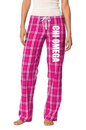 Product DescriptionChi Omega Pajamas - Flannel Plaid Pantis 4.3-ounce, 100% ring spun combed cotton Elastic waistband with functional twill tape drawcord Faux fly.0
