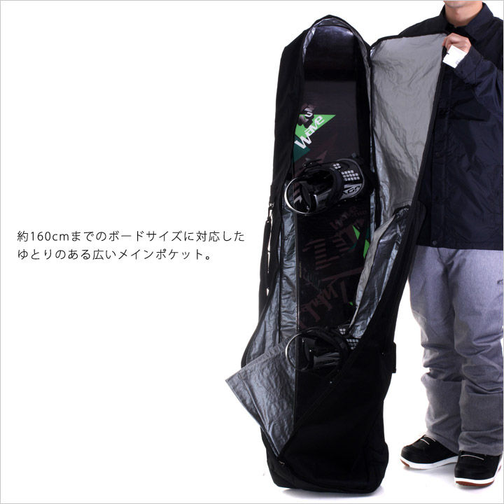 ボードサイズ160cmまで対応、ビンディング装着のまま収納可能で、ケースのライナーを傷つけないように付属でライナーと同素材の簡易ケースが付いた機能性に富んだアイテムです。