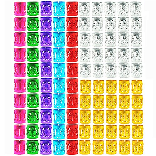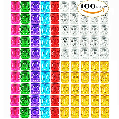 100 Pieces 7 color Adjustable dread locks hair braiding cuffs: 25 pcs silver / 25 pcs gold / 10 pcs red /10 pcs purple / 10 pcs pink / 10 pcs blue / 10 pcs green